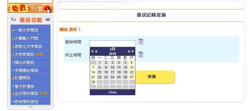 2.可依據發送帳號或發送時間,進行查詢。 |